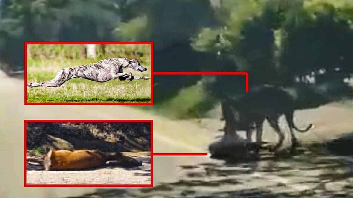 En la grabación se puede ver cómo el vehículo se acerca al lugar en el que el galgo se encuentra comiendo la corza que acaba de cazar. Tras varios toques de claxon, el galgo finalmente se va del lugar.