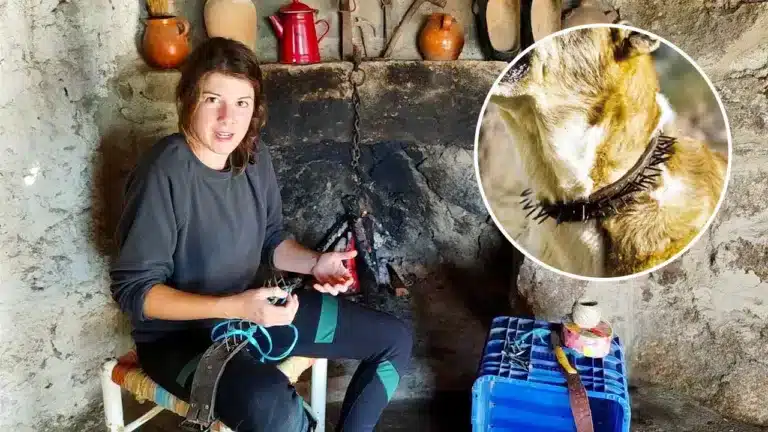 La joven pastora Nazaret Martín Crespo, natural del norte de Extremadura, publicó a finales del pasado año en sus redes sociales un vídeo en el que expone las razones por las que utiliza los gruesos collares provistos de puntas de hierro conocidos como ‘carlancas’ para proteger a sus perros de posibles ataques de cánidos.