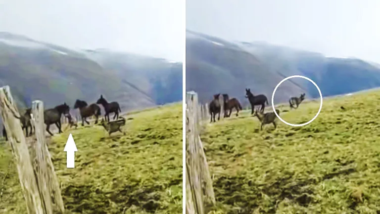El vídeo, grabado por un amigo del ganadero que lo ha compartido en redes sociales, recoge el testimonio de este último: «Imágenes que me envía mi amigo ‘Cafu’ evitando «in extremis» el ataque de los lobos a sus yeguas». En las imágenes se ve al hombre llegar sofocado al lugar del ataque, justo cuando un lobo se lanza al cuello de una burra. De inmediato, uno de sus perros entra en escena y persigue al cánido salvaje hasta lo alto de una colina.