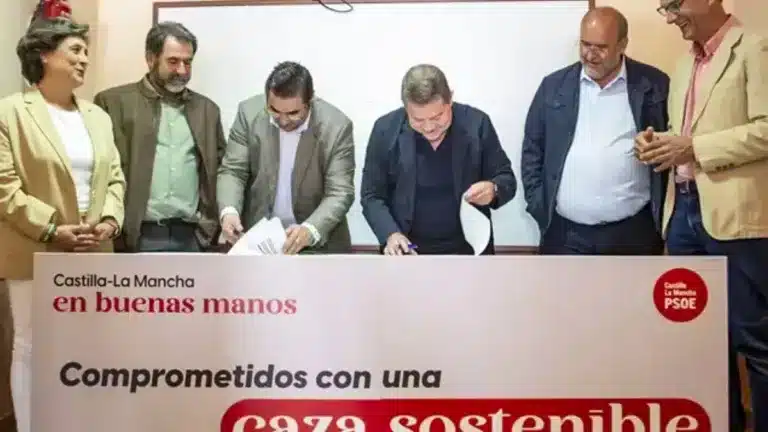 Emiliano García-Page, candidato del PSOE a la Presidencia de Castilla-La Mancha, ha firmado este jueves el ‘Pacto por la Caza en Castilla-La Mancha‘ en Casasimarro (Cuenca). Se trata de un documento que recoge diferentes medidas propuestas por la Federación de Caza de la región, APROCA y ATICA, que agrupan 21.000 cazadores y 1.200 cotos de caza con más de 5 millones de hectáreas.