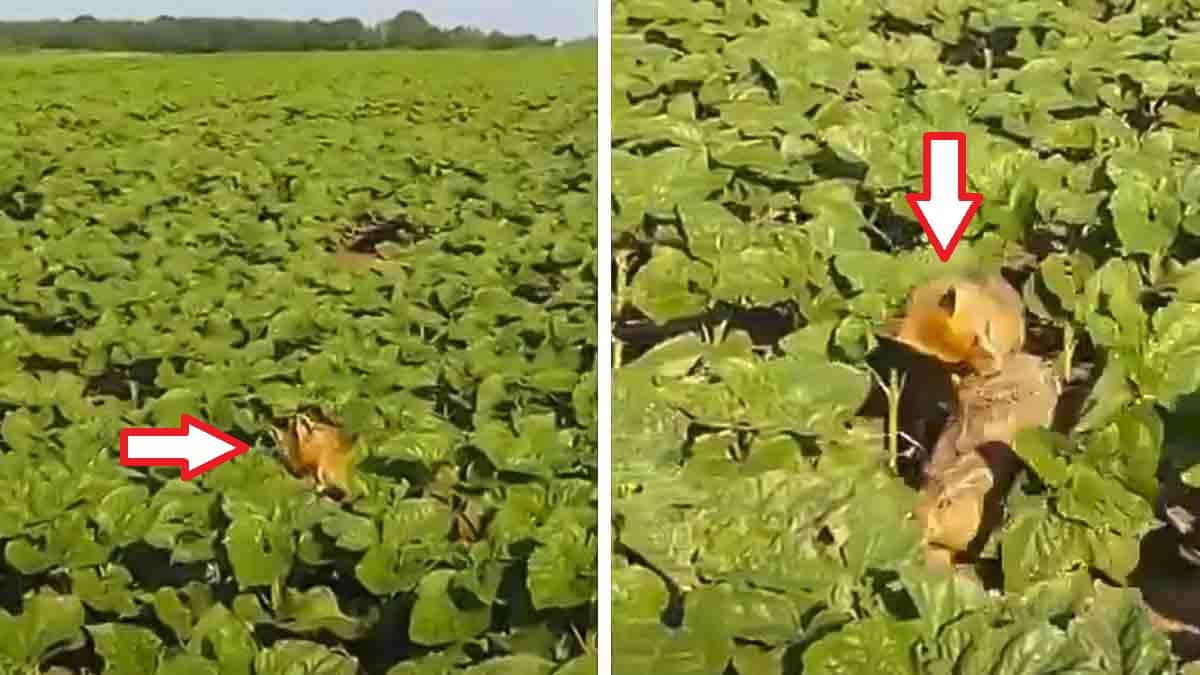Este tipo ha grabado el instante en que un zorro captura una liebre en mitad de un campo de cultivo. En la filmación se puede ver al raposo con ella en la boca mientras esta última trata de escapar.