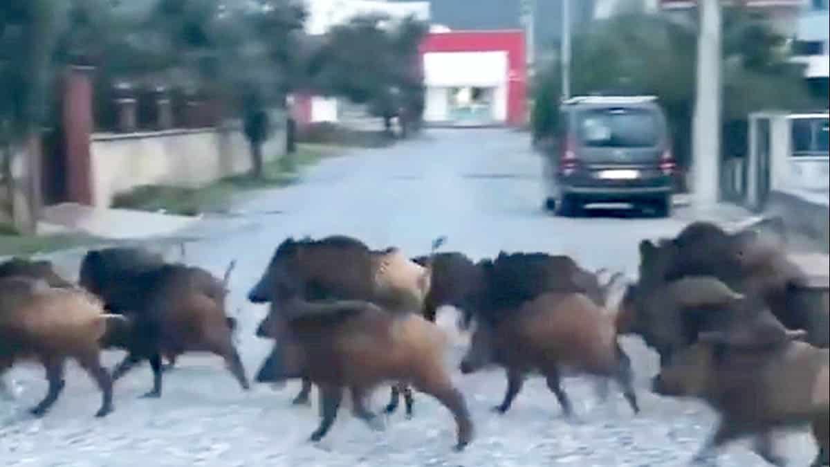 Aunque se encuentran en el interior de una población, en las imágenes se puede ver que las casas se intercalan con terrenos de cultivo y parcelas sin edificaciones, de ahí que los animales se hayan adentrado en el casco urbano con total confianza.