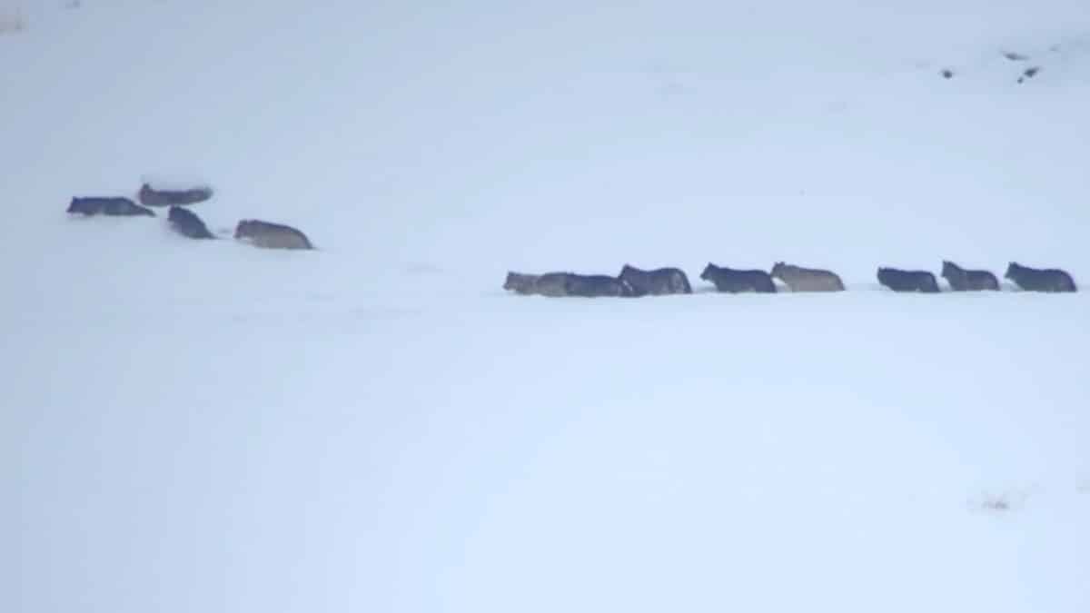 El vídeo que te mostramos a continuación muestra el ataque de una manada de once lobos a cinco ciervos. Las imágenes fueron tomadas el pasado 27 de enero en el Parque Nacional de Yellowstone, en Wyoming, un estado al oeste de los Estados Unidos.