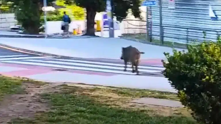 Tal y como se ve en las imágenes, el animal parece correr sin mostrar ningún miedo, pero eso sí, con cierto nivel de civismo. Por muy loca que sea su aparición en las inmediaciones del centro, incluso el jabalí es consciente de que el paso de cebra es el lugar correcto por el que debe cruzar la carretera.