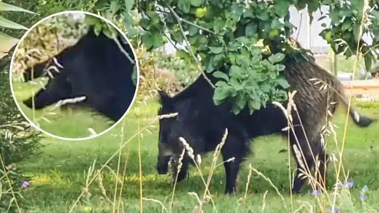 Las siguientes imágenes también muestran su tremendo poder de resistencia: una filmación enviada por un seguidor de Jara y Sedal a esta redacción muestra cómo un jabalí que posee una extraña jeta hoza en una zona ajardinada.