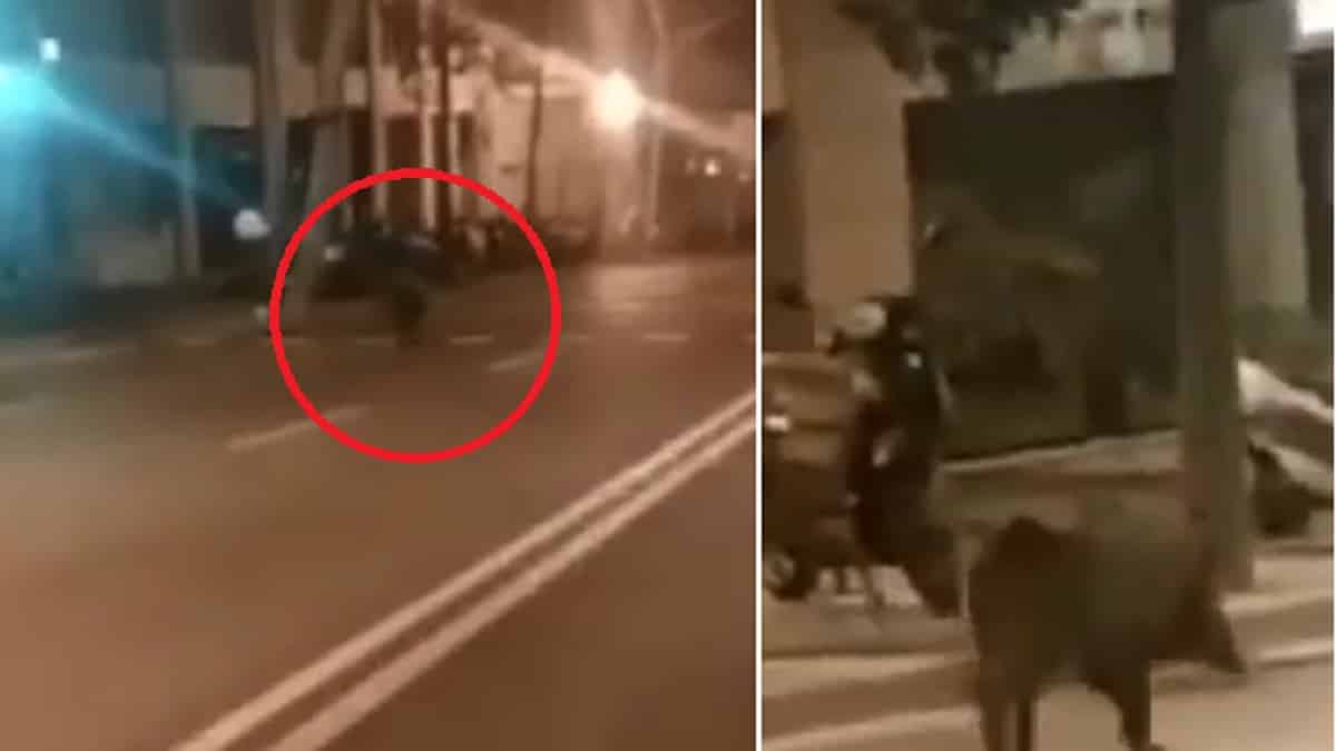 En él, se puede ver a este jabalí de importantes dimensiones caminando en soledad en medio de la importante calle barcelonesa.