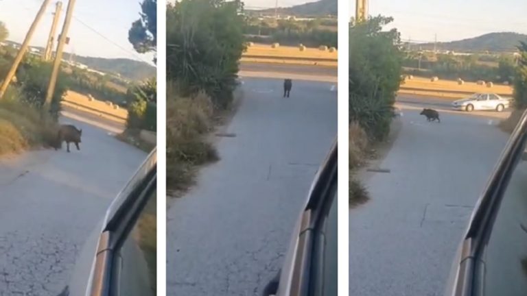Los jóvenes que graban la escena, ocurrida en las cercanías de la localidad barcelonesa de Tordera, no dan crédito tras ver cómo un animal salvaje puede deambula por una zona transitada por vehículos y a plena luz del día, algo que sólo se explica por la sobrepoblación de la especie en esta comunidad autónoma y el necesario empleo de la caza como herramienta de gestión.