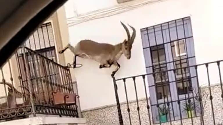 Este vídeo de varios machos monteses que saltan de balcón en balcón en el centro urbano de un pueblo no para de compartirse entre los internautas.