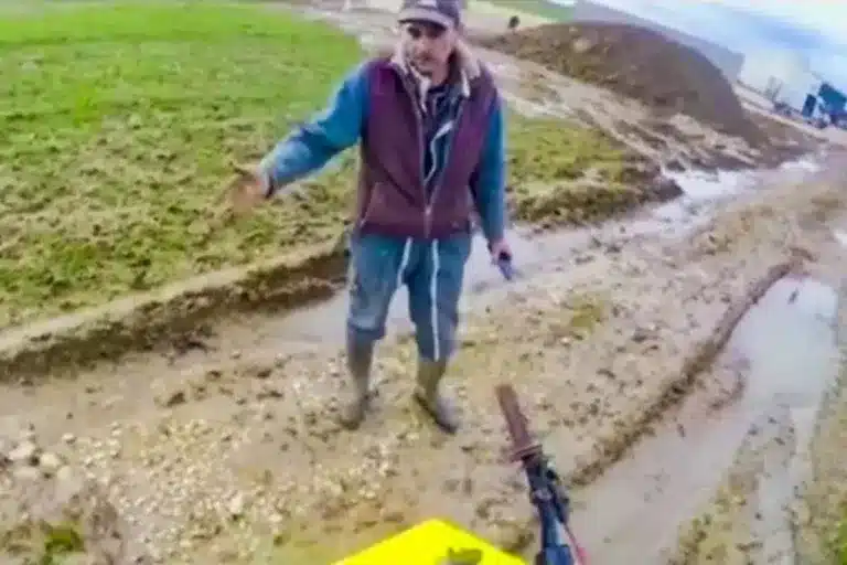 El motorista, ajeno a la propiedad por la que circulaba, se detuvo para evaluar los daños mecánicos. Mientras manipulaba la moto, apareció el propietario del terreno, un granjero que no tardó en acercarse a la escena. Su actitud en un primer momento denotaba desconfianza. No es para menos: muchos agricultores llevan años soportando la presencia de vehículos motorizados que invaden sus fincas sin permiso, erosionan caminos y causan daños a cultivos y cierres.