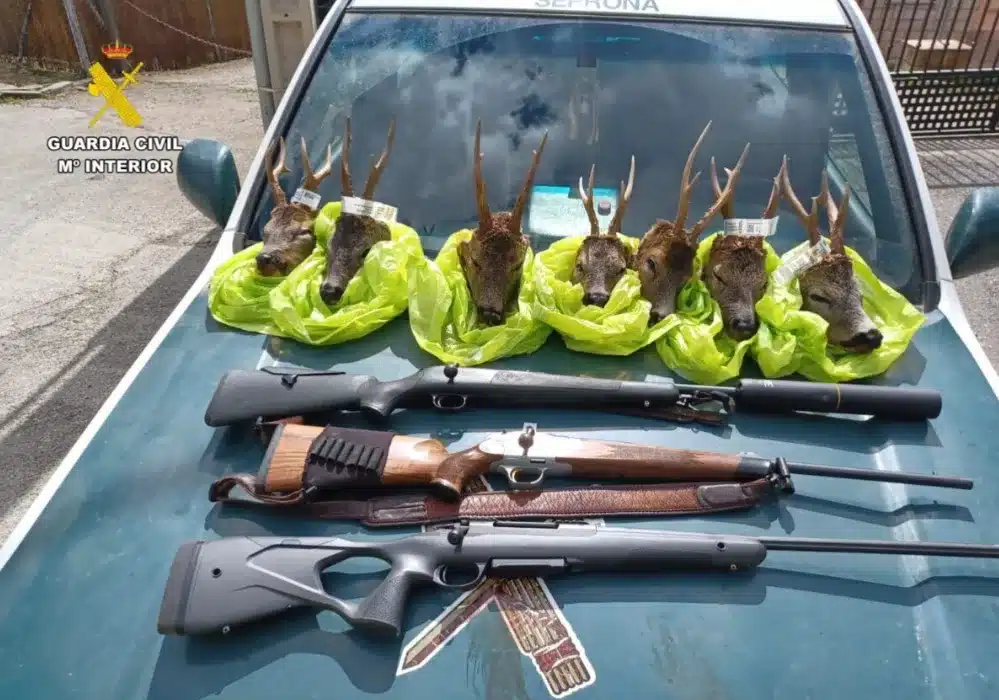 Dos hombres fueron sorprendidos por el DEPRONA de la Guardia Civil en la localidad aragonesa de Fiscal mientras transportaban varias piezas de caza. Aunque una de ellas, un sarrio, estaba legalmente precintado, el resto de los trofeos de corzo presentaban graves irregularidades. El hallazgo de tres cabezas ocultas sin precinto agravó aún más la situación.