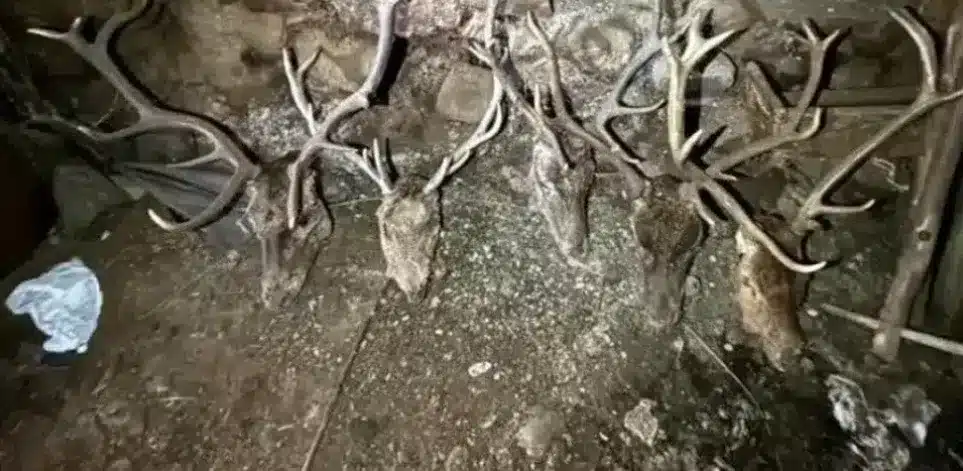 Bajo la trampilla apareció una estancia cerrada donde se almacenaban 52 trofeos de fauna cinegética: 13 cabezas de ciervo, 34 de corzo y cinco de rebeco. Todas las piezas procedían de zonas de caza controlada de municipios como Sort, Soriguera, Rialp y Tornafort, lo que agrava la gravedad de los hechos.