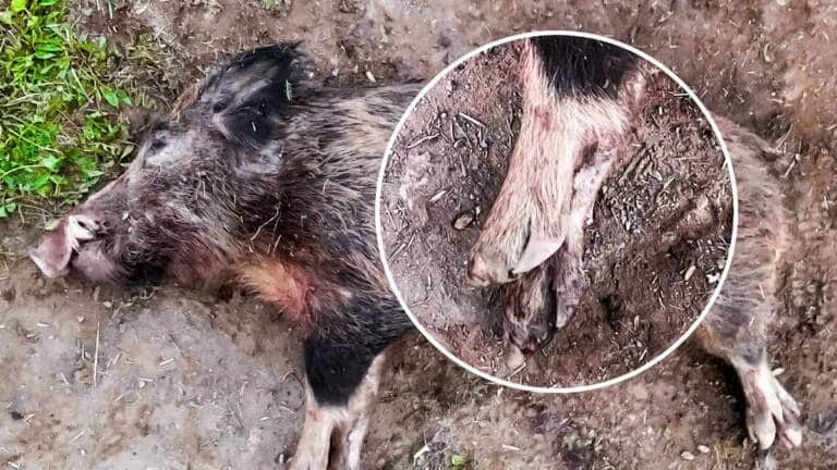 El cazador señala que «ya había visto en los aguardos» a este animal y sabía que tenía las patas blancas. «Mucha gente decía que era cruzado con cerdo ibérico por tener las patas así, pero creo que era un jabalí cruzado con vietnamita», expone.