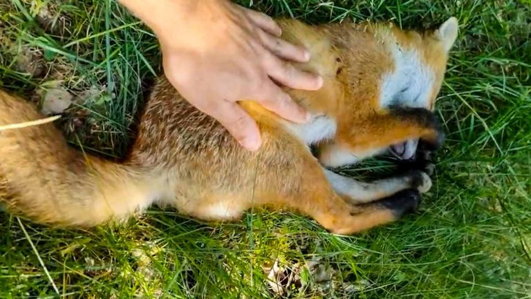 Otro vídeo similar: se encuentra un zorro durmiendo como un tronco y lo graba con su móvil