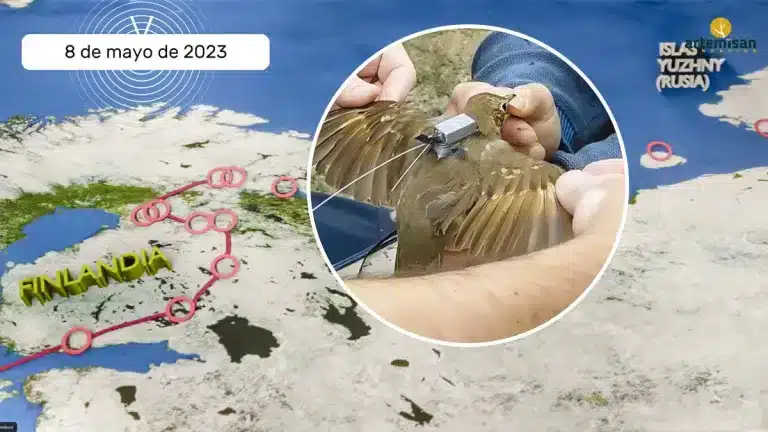 Según explica la Fundación Artemisan en el vídeo, el zorzal común fue capturado y marcado con el GPS en febrero de 2023 en la Comunidad Foral de Navarra, donde permaneció hasta finales de marzo, cuando inició su migración prenupcial hacia el norte de Europa. Tardó un mes en cruzar Francia y a finales de abril llegó a Alemania, desplazándose hasta el norte para permanecer a orillas del mar Báltico hasta principios de mayo. En dos días cruzó el Báltico y el 8 de mayo llegó a Finlandia. La localización más norteña la envió el 12 de junio de 2023 desde las Islas Yuzhny (Rusia). A finales de junio regresó al norte de Finlandia, donde estableció su zona de reproducción tras recorrer más de 6.000 kilómetros.