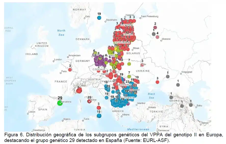 El informe documenta además la primera detección del genotipo II de PPA en España desde 1994, describe la identificación de un nuevo subgrupo genético (grupo 29) y concluye que la combinación de un virus singular, densidades altas de jabalí y entornos periurbanos crea un escenario epidemiológico especialmente complejo.