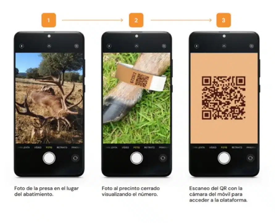 Antes de entrar en el detalle, conviene recordar que el nuevo precinto se rompe si se manipula, lo que impide su reutilización. El escaneo del QR dirige a la aplicación de gestión, donde se verifica el código, el tipo de pieza y el estado. El sistema admite la comunicación inmediata tras el abate y, si no hay cobertura, da un margen de hasta 10 días para registrar la fecha de captura.