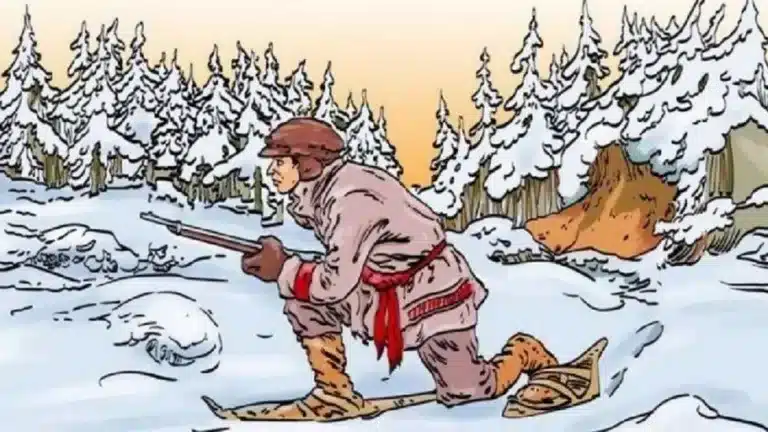 En efecto, la pieza que buscábamos se trata de un oso, una especie no cinegética en nuestro país pero que sí se puede cazar en otros lugares del mundo. De este modo, el cazador del dibujo estaba encarando el arma justo en el lado contrario a donde se encontraba el plantígrado.
