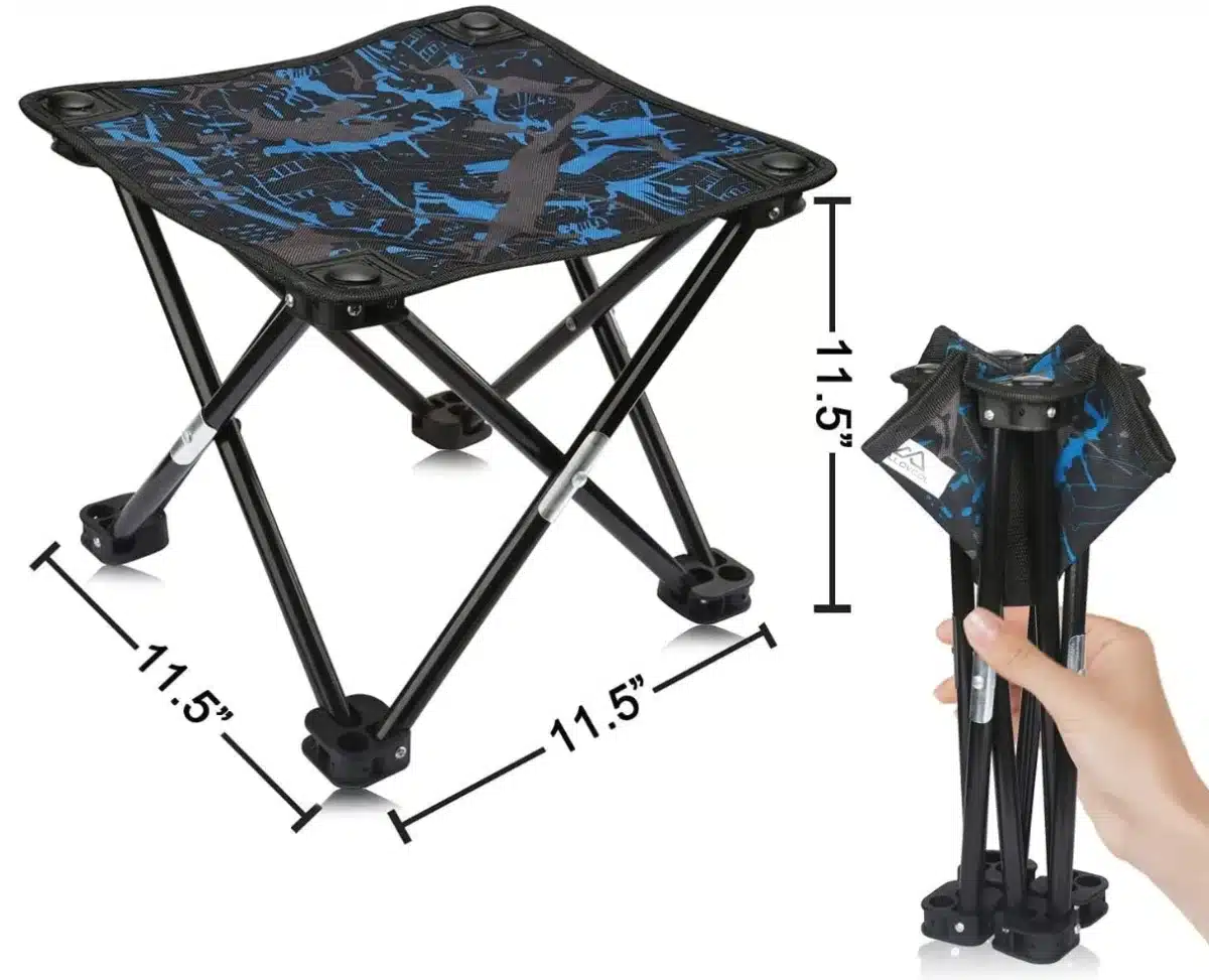 Junto a este modelo ultracompacto que se guarda en un bolsito, en Amazon también está ganando terreno otra opción que puede interesar a quienes buscan más estabilidad en el campo: un taburete plegable de cuatro patas con estructura tipo tijera, que se despliega en segundos y ofrece una base más firme sobre terrenos irregulares.