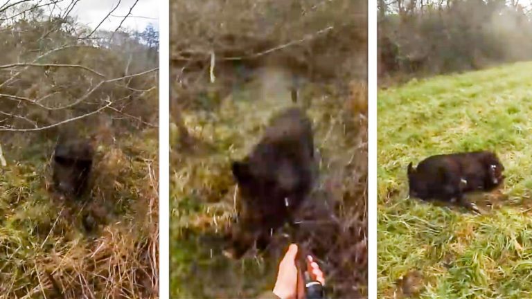 Afortunadamente el disparo alcanza al enorme jabalí y lo abate de manera casi instantánea, haciendo que cambie su dirección y evitando embestir a Ludovic Postollec, el cazador francés que protagoniza el lance. Sin duda alguna, hay que ver varias veces la grabación para comprender la gravedad de la situación.