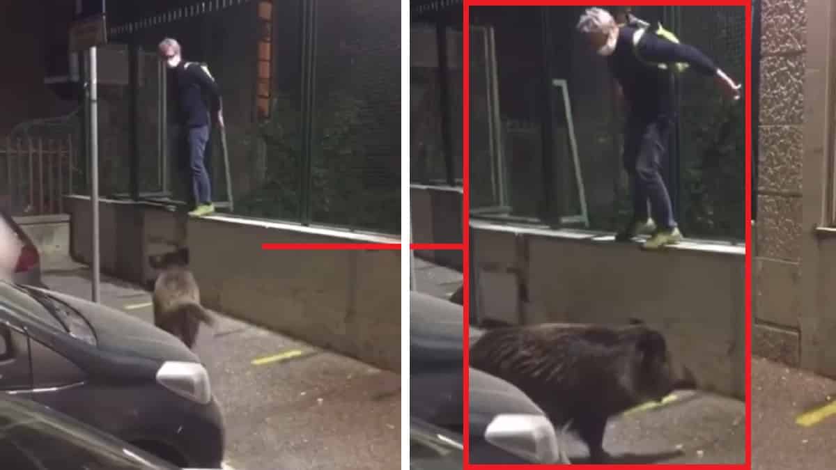 Han ocurrido en plena ciudad de Roma, y en ellas se puede ver cómo un hombre es acechado por un jabalí en plena vía pública. La persona tiene que subirse hasta la base de una valla para evitar que el jabalí arremeta contra él mientras otro individuo graba la peligrosa escena a tan sólo unos metros del animal.