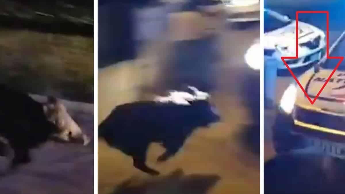 En el vídeo que te proponemos a continuación se muestra cómo un jabalí ‘atropella’ a un coche de la Policía. El animal se encontraba en una zona urbana y estaba siendo reconducido por los agentes. Al ver que iban hacia él, escapó y acabó estampándose contra el vehículo oficial, probablemente cegado por las luces.