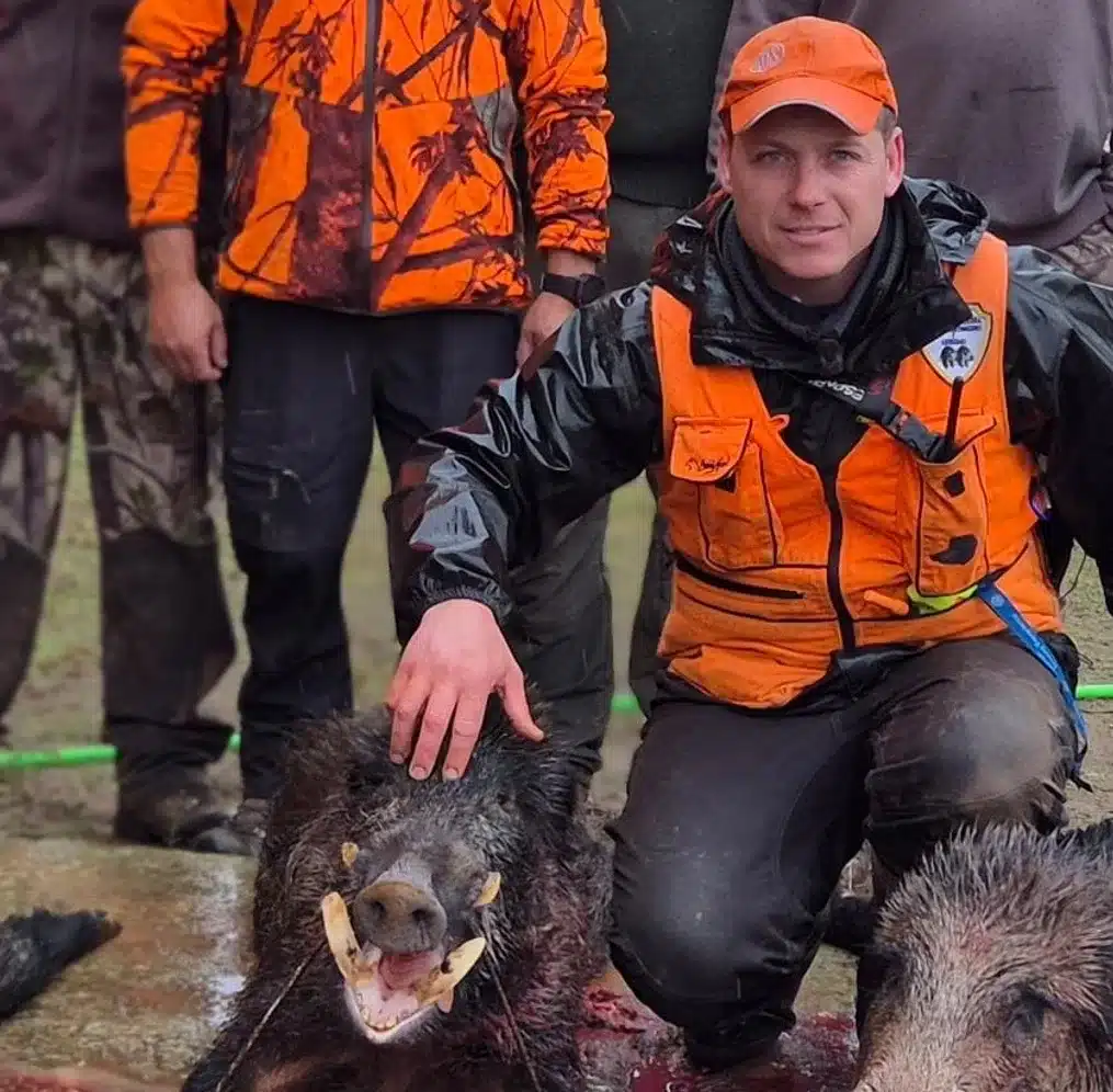 El momento decisivo llegó casi al cierre de la batida. De improviso, un jabalí viejo, de esos que rara vez dan la cara, trató de volver a esconderse dentro del maíz cuando Raúl lo sorprendió a apenas tres metros. Lo abatió casi a quemarropa, sin imaginar lo que iban a encontrar los perros al llegar hasta él.