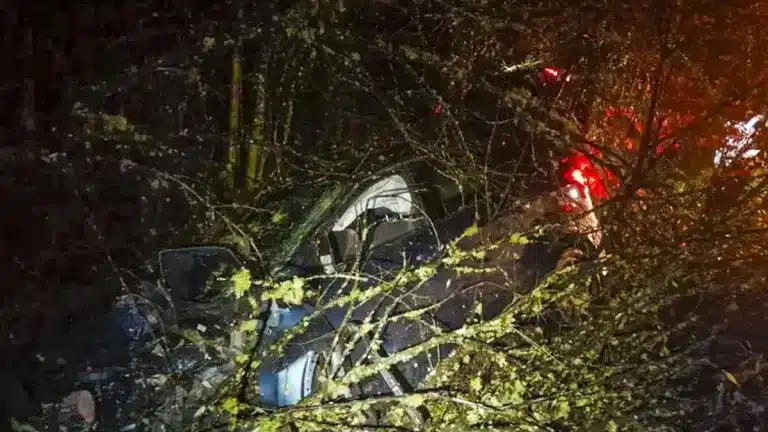 Como consecuencia de la colisión, el vehículo salió de la vía y el conductor, siendo el único ocupante del mismo, quedó atrapado dentro de él. El hombre logró moverse de la parte delantera del coche, un Ford, a la trasera para tratar de salir.
