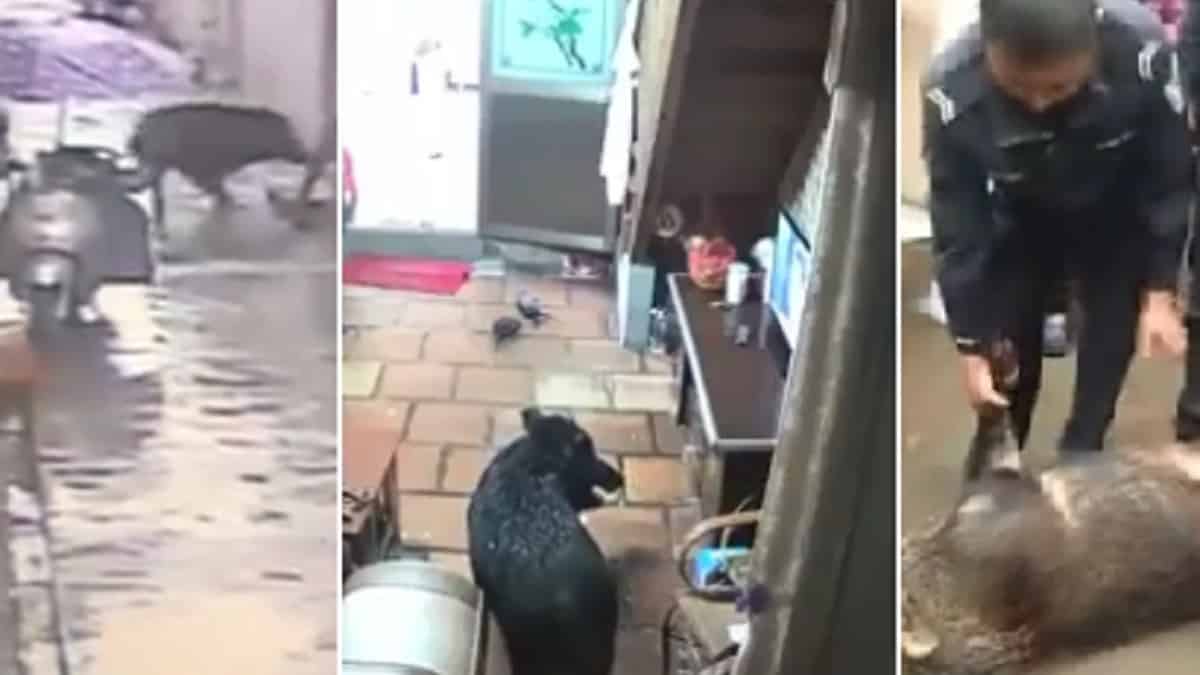 Los vecinos de una casa situada en la ciudad de Puning, provincia de Guangdong, en el sur de China, quedaron sorprendidos hace unos días con la presencia de un jabalí al que le faltaba una pata y que irrumpió en el interior de su hogar en busca de comida.