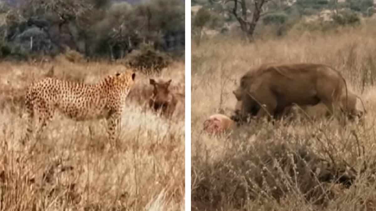 El canal de YouTube Kruger Sightings ha publicado el vídeo del momento en el que los jabalíes se comen al mamífero. En la grabación habla Shakera Kaloo, uno de los guías del Safari: «Nos sorprendió, ya que no esperábamos ver algo así. El guepardo se sentaba cerca de la presa, mirando a su alrededor para asegurarse de que todo estuviera despejado antes de concentrarse en su comida. Fue entonces cuando una piara de jabalíes se acercó cada vez más al impala».