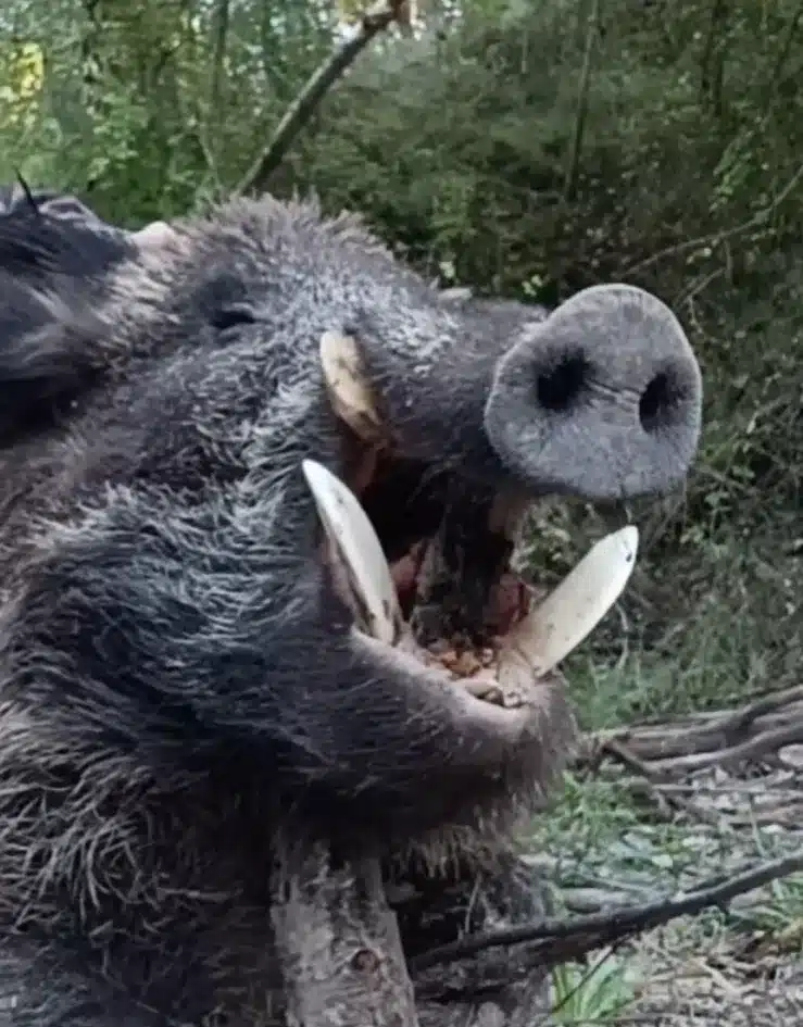 Durante varias noches, la escena se repitió sin éxito. El jabalí entraba y salía, siempre con ventaja. Hasta que una noche, por fin, apareció en el visor. Era él. «Las navajas sobresalían claramente» de su prominente hocico y su tamaño superaban lo imaginado.