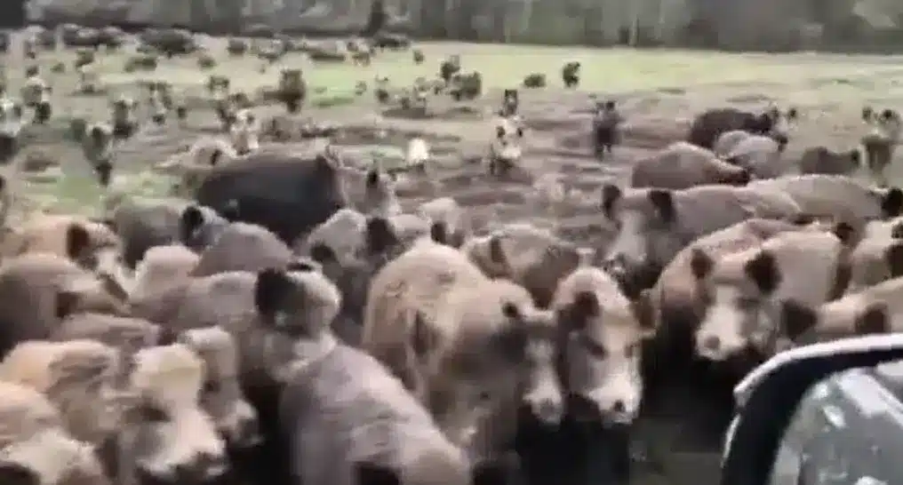 El vídeo fue publicado en TikTok por el usuario @ludwig2999 y en pocos días ha superado los 90.000 ‘me gusta’, además de acumular miles de comentarios. No es para menos: en las imágenes se ve claramente cómo cientos de cochinos rodean el vehículo tipo pick-up, avanzando sin miedo hacia las ventanillas, algunos de ellos incluso erizados y bufando. La situación, lejos de parecer una amenaza real, denota una familiaridad inquietante entre los animales y los humanos.