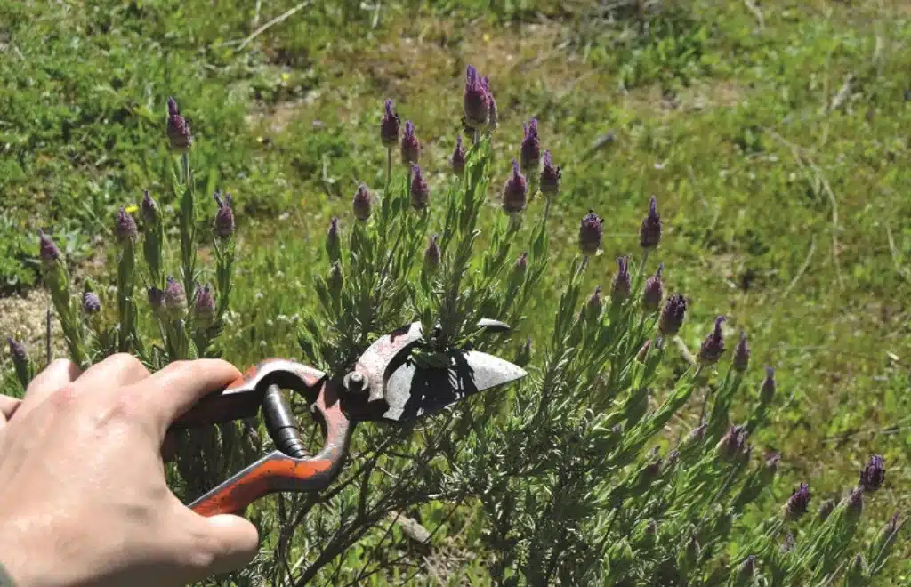 El primer paso para fabricar este jabón artesanal es recolectar las plantas más características del entorno. No hace falta cargar con grandes cantidades: unas ramitas de romero, cantueso, tomillo, santolina o manzanilla bastarán. La clave está en elegir especies aromáticas y representativas del hábitat donde desarrollas tu actividad.