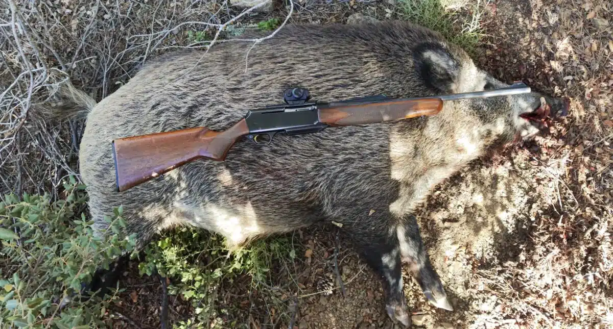 El joven apenas tuvo unos segundos para reaccionar. Se preparó, apuntó y efectuó un único disparo con su Browning Bar MK2 del calibre .30-06, equipado con un punto rojo Sig Sauer Romeo 5. La bala entró por la última costilla izquierda y salió antes del cuello, una trayectoria perfecta que detuvo al enorme macho tras recorrer unos pocos metros. El animal cayó a unos diez pasos del disparo, rodando por la pendiente hasta quedar inmóvil.
