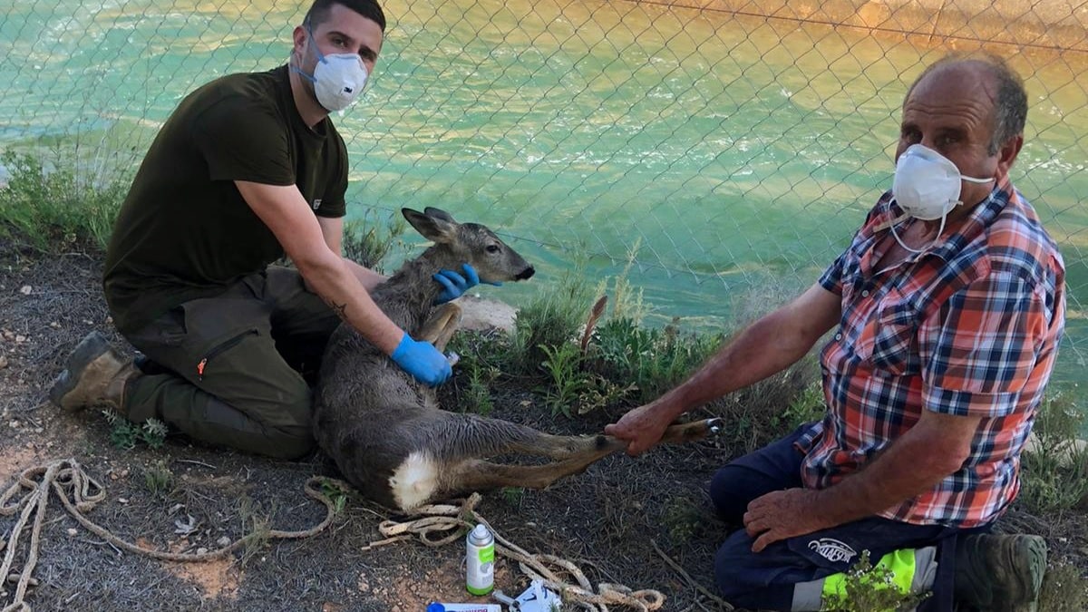 Cazadores conquenses han salvado la vida a dos corzas que estaban a punto de ahogarse en el trasvase Tajo-Segura este lunes 4 de mayo. Miguel Huerta, de 26 años de edad y presidente del coto de caza del municipio de El Picazo, ha narrado a Jara y Sedal cómo se desarrolló este último rescate.