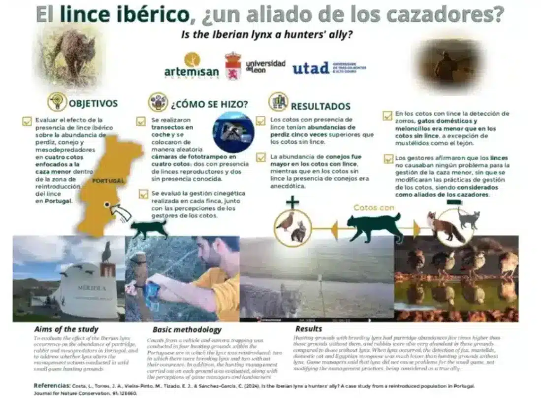 La observación de Sotomayor encuentra ahora respaldo científico. Una investigación desarrollada en el sur de Portugal, con participación de la Fundación Artemisan, ha demostrado que los cotos donde habita el lince ibérico registran mayores densidades de perdiz roja y conejo, y una notable reducción de zorros, meloncillos y gatos asilvestrados.