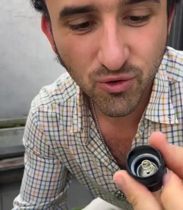 Para respaldar su argumento, el cazador muestra el sistema de una linterna de gama alta. En este caso, el interior prescinde por completo del clásico muelle como conductor y apuesta por una superficie metálica plana, más eficiente y segura. Justo lo que propone replicar en el modelo económico tras realizar el truco.