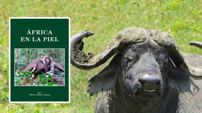 «No es, sólo, un libro de caza, es un libro que intenta narrar la vida vista a través del ver, mirar y sentir de un cazador viajero que cayó rendido y enamorado ante el alma de una tierra sin igual; que nunca hubiese podido hacer suya la energía vital de sus gentes si no hubiese compartido con ellas las vivencias que la caza le regaló; que jamás hubiese alcanzado a entender la salvaje hermosura que se oculta en la infinitud de sus rincones de no haber sido porque la caza le llevó hasta ellos, le llevó y le permitió vivirlos como una más de las gentes que allí, alguna vez, llegaron, antes que muchos o muchísimo antes de todos». Así habla Alberto Núñez Seoane de África en la piel, en la que comparte sus experiencias en la caza de cada uno de los considerados como los cinco grandes de África: elefante, rinoceronte, búfalo, león y leopardo.