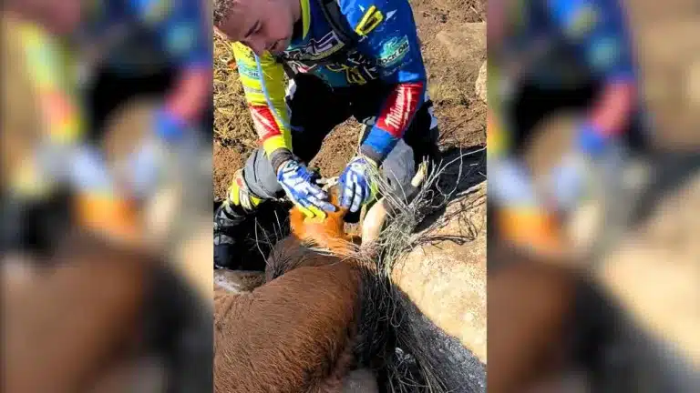 Con unos alicates en la mano y cargado de paciencia, el hombre empieza a cortar y desenredar el alambre, mientras el animal se mantiene inmóvil. Finalmente y como nos muestra este vídeo que se ha hecho tan viral en TikTok, con un total de más de 100.000 visualizaciones, el motorista consigue liberar al animal y ponerlo en pie para que continúe con su vida.