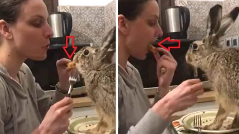 Las imágenes de una mujer dando de comer a una liebre con el mismo tenedor con el que ella se alimentaba no han dejado a nadie indiferente.