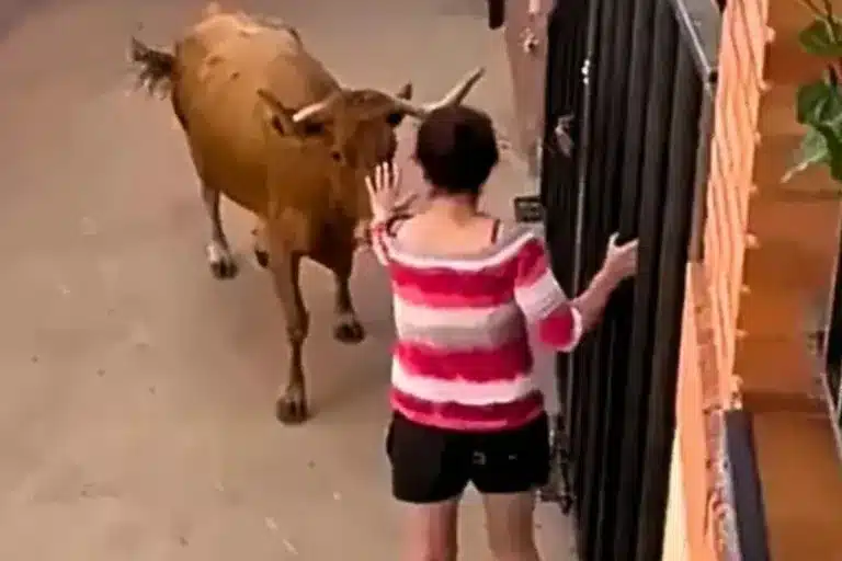 Durante los últimos días, un impactante vídeo ha resurgido en redes sociales provocando una nueva ola de comentarios. En las imágenes se ve a una mujer que, en lo que parece ser un encierro popular, se interpone deliberadamente en el camino de una vaca brava. Con la mano extendida y una actitud aparentemente calmada, la mujer intenta detener al animal como si se tratara de una mascota. Sin embargo, el desenlace demuestra lo lejos que estaba de comprender el comportamiento instintivo de un bovino en plena carrera.