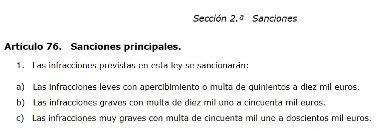 El texto, en fase de proyecto, indica que todos los perros, gatos y hurones, con la excepción de los gatos comunitarios, deberán ser sometidos como mínimo a una revisión veterinaria al año. Aunque no se especifica la sanción concreta por incumplir esta obligación, la ley base establece que cualquier infracción que no cause daño directo al animal será considerada leve, con multas que van desde los 500 hasta los 10.000 euros.