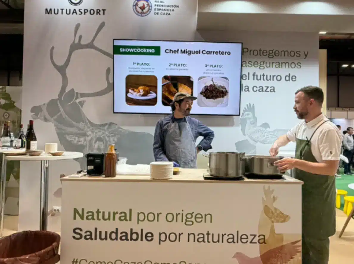 El programa desarrollado en el stand ha ido más allá de la atención al público. Durante la feria se han llevado a cabo distintas actividades centradas en la divulgación, la seguridad y la promoción de la actividad cinegética. El viernes 20 de marzo tuvo lugar la presentación del Grupo Operativo BIANEXIA y el estreno del documental Naturaleza en Equilibrio, acompañado de una mesa de análisis sobre el futuro del sector. La jornada se completó con un showcooking del chef Miguel Carretero, acercando la gastronomía de caza a los asistentes.