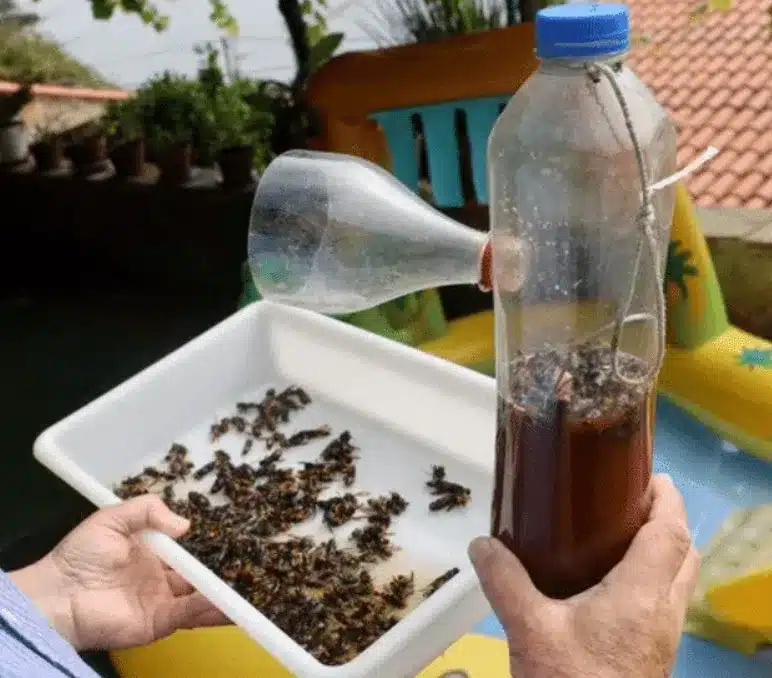 Urgorri construye las trampas con botellas de plástico que contienen una mezcla de vino blanco, cerveza negra, azúcar y zumo de arándano. Este cóctel dulce y fermentado atrae a las avispas, que quedan atrapadas en el interior y no pueden salir. En tan solo una semana llegó a capturar más de 200 ejemplares en su jardín. «Siempre muevo un poco la botella para que salpique el interior, y que ese olor las atraiga y una vez que entran ya no saben salir», explicaba en declaraciones a La Voz de Galicia.