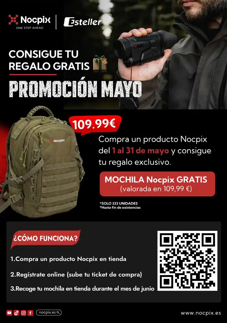 La iniciativa, vigente del 1 al 31 de mayo, ofrece un regalo destacado: una mochila táctica valorada en 109,99 euros por la compra de cualquier dispositivo de la marca. No se trata de un obsequio simbólico, sino de un producto diseñado para el uso real en el terreno, con prestaciones acordes al resto del catálogo de Nocpix.