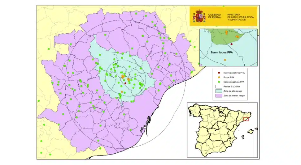 En total, ya son once los focos de PPA detectados hasta la fecha en jabalíes, tres de ellos considerados primarios y ocho secundarios, con un balance acumulado de 29 animales positivos. Paralelamente, se han analizado 262 jabalíes hallados muertos en el medio natural dentro del radio de 20 kilómetros de la zona infectada y su entorno, todos ellos con resultado negativo.