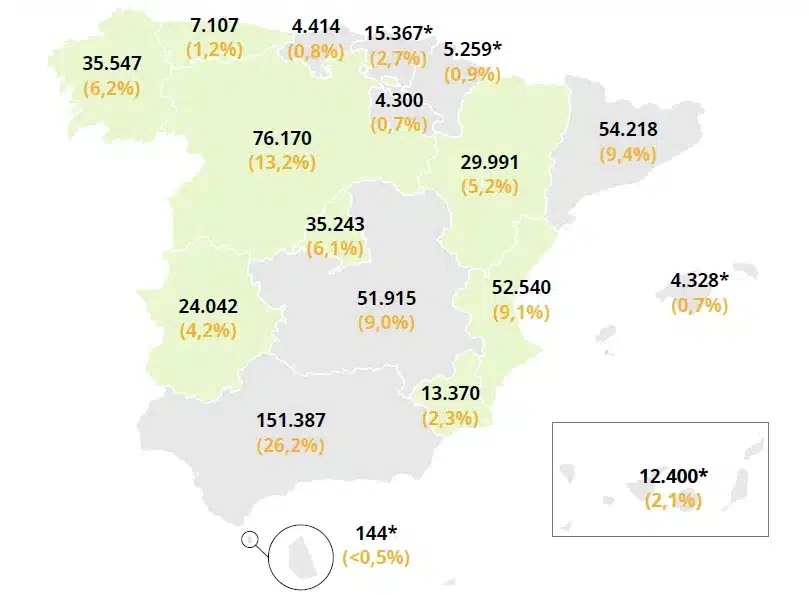 Andalucía, Castilla y León y Cataluña, a la cabeza