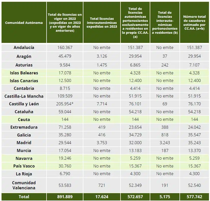 El número de cazadores en España se sitúa en 577.742, según el último estudio presentado por la Fundación Artemisan sobre el impacto económico, social y medioambiental de la actividad cinegética en nuestro país. El informe, dado a conocer recientemente en Madrid, recoge datos oficiales a 31 de diciembre de 2023 e incluye tanto licencias autonómicas como interautonómicas, arrojando una radiografía precisa de la distribución geográfica de los aficionados y del peso de la caza como motor territorial.