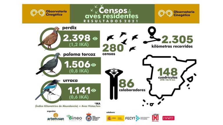 El Observatorio Cinegético ha cerrado el periodo de censos de aves residentes en 2021, entre los meses de febrero y abril, con más de 2.300 kilómetros recorridos en un total de 280 censos, realizados gracias a 86 cazadores y gestores colaboradores de toda España.