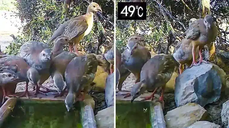 Ahora, el mismo cazador ha publicado un vídeo de esta misma pollada y en el mismo bebedero, donde han logrado sobrevivir a los 49 grados de calor de los últimos días gracias, entre otras razones, al empeño de los cazadores por hidratar a la fauna de la zona.