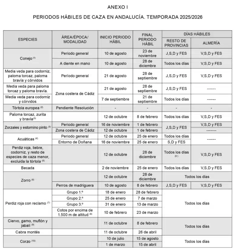 La Junta de Andalucía ha publicado en el Boletín Oficial (BOJA) la Resolución que regula los periodos hábiles de caza para la temporada 2025/26. Este documento fija las fechas conforme a los criterios del Comité NADEG, en cumplimiento de la Directiva AVES, y recoge dos novedades relevantes: cambios en la media veda para la Zona Costera de Cádiz y limitaciones para la captura de liebre ibérica.